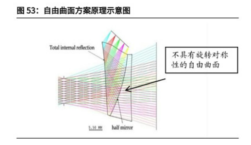 当前市面上采用自由曲面方案的AR智能眼镜无论在沉浸感、成像质量方面都比其它光学方案更具优势 。然而,此方案也有着厚度和重量仍高于普通眼镜的劣势,虽然它的成像色彩饱和,但是也容易导致局部畸变。