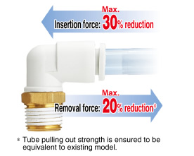 * Tube pulling out strength is ensured to be equivalent to existing model.
