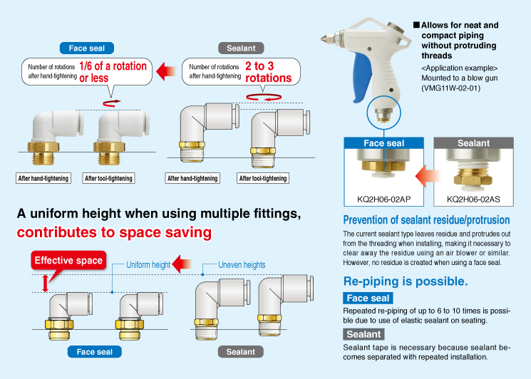 Original thread construction which allows for the use of piping taper female threads (Rc, NPT)